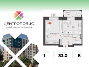 В центральном квартале Ульяновска продается 1-комнатная квартира площадью 33.00 кв. м. Квартира расположена на 8 этаже дома 6 в жилом комплексе комфорт-класса Центрополис.