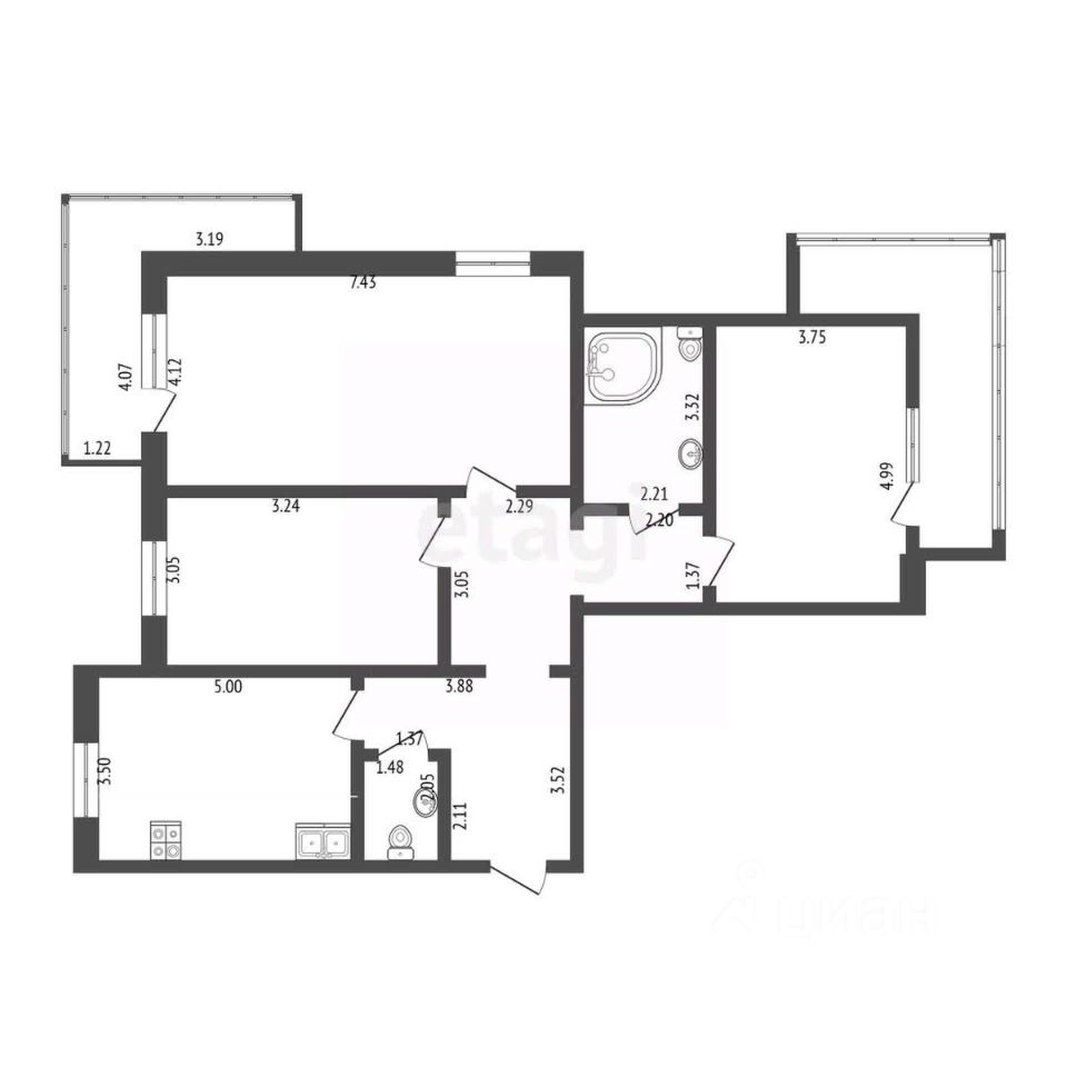 Большая просторная кухня, гостиная с выходом на застекленную лоджию, кабинет для работы или можно сделать комнатой ребенка, и просторная спальня для родителей также с выходом на лоджию. Обе лоджии отделаны плиткой и застеклены пластиковой рамой. Из них открывается прекрасный вид на город!