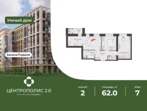 В Заволжском районе Ульяновска продается 2-комнатная квартира площадью 62.00 кв. м. Квартира расположена на 7 этаже 9 корпуса в жилом комплексе CENTROPOLIS 2.0 ("Центрополис 2.0").