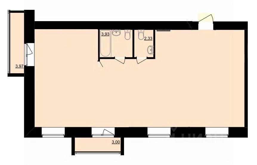 Потолки 3,08 метра;