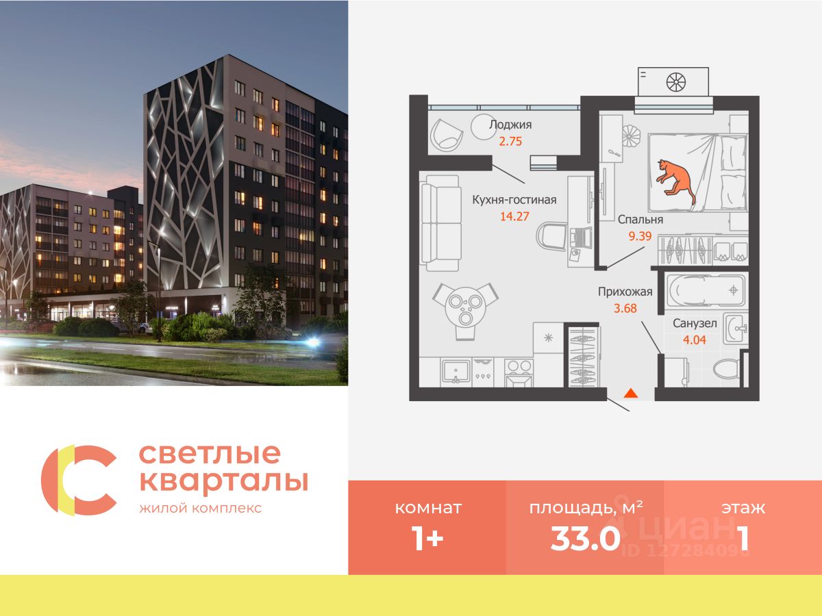 В Заволжском районе Ульяновска, рядом с Прибрежным парком, продается 1-комнатная квартира площадью 33.00 кв. м. Квартира находится на 1 этаже дома 4 комплекса комфорт-класса "Светлые кварталы" (Застройщик - ГК "Железно").