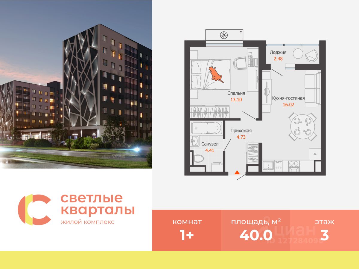 В Заволжском районе Ульяновска, рядом с Прибрежным парком, продается 1-комнатная квартира площадью 40.00 кв. м. Квартира находится на 3 этаже дома 4 комплекса комфорт-класса "Светлые кварталы" (Застройщик - ГК "Железно").