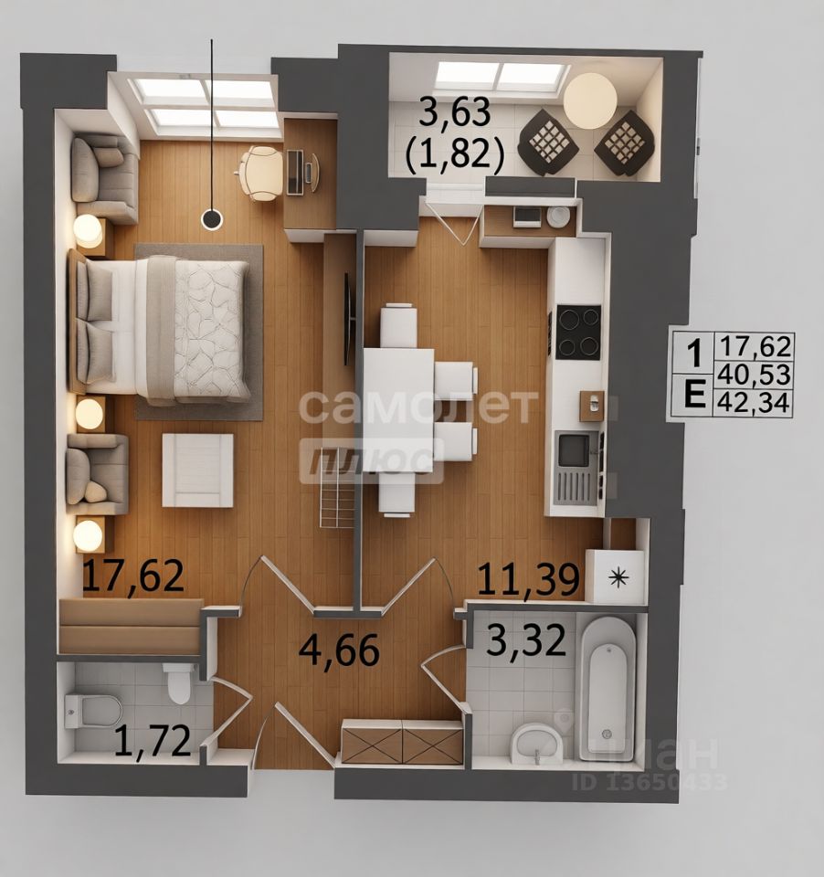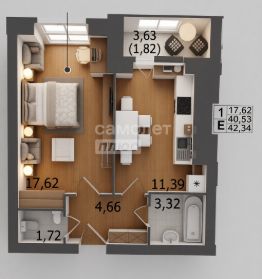 Арт. 129943599 Однокомнатная квартира 42м с учетом балкона в элитном ЖК "ЭКО-СИТИ"