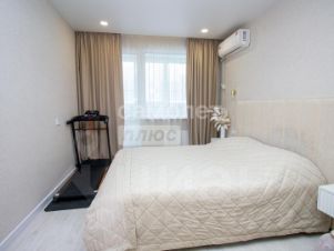 Из комнаты идет выход на лоджию, где можно оборудовать зону отдыха, чтобы насладиться тишиной и спокойствием, полюбоваться прекрасным видом на город.