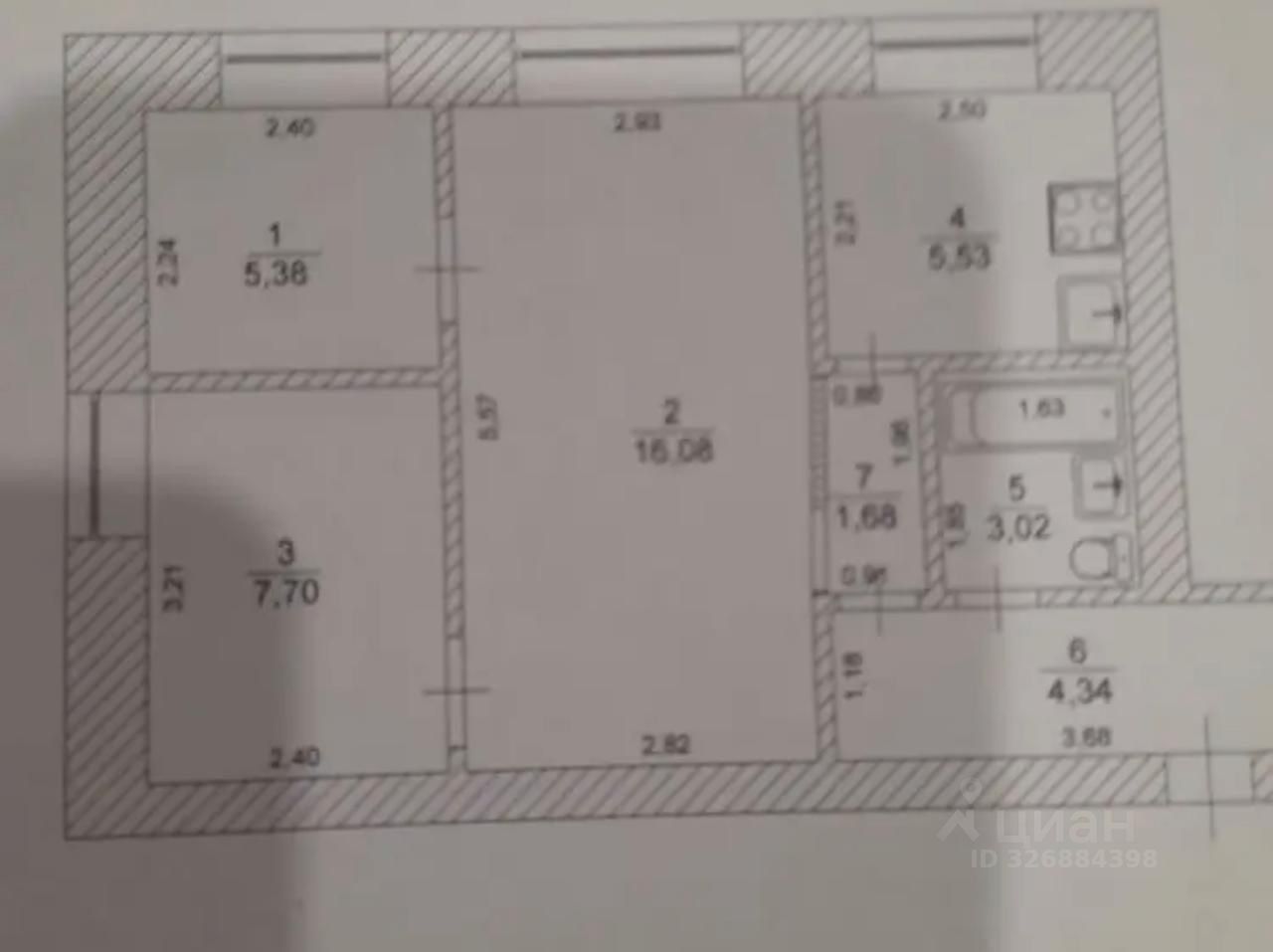 Продается светлую , теплую трехкомнатная квартира общей площадью 43.7 кв. м, расположенная на первом этаже двухэтажного дома, построенного в 1959 году. Жилая площадь составляет 29.16 кв. м, а кухня занимает 5.53 кв. м. Высота потолков — 2.5 метра, что добавляет ощущение простора. Окна выходят на улицу, поэтому в квартире всегда светло и комфортно.