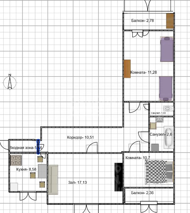 в комнате- шкаф купе, в детской детские кровати, комод, шкаф, диван с гостиной, ЖК/ТВ, кондиционер.