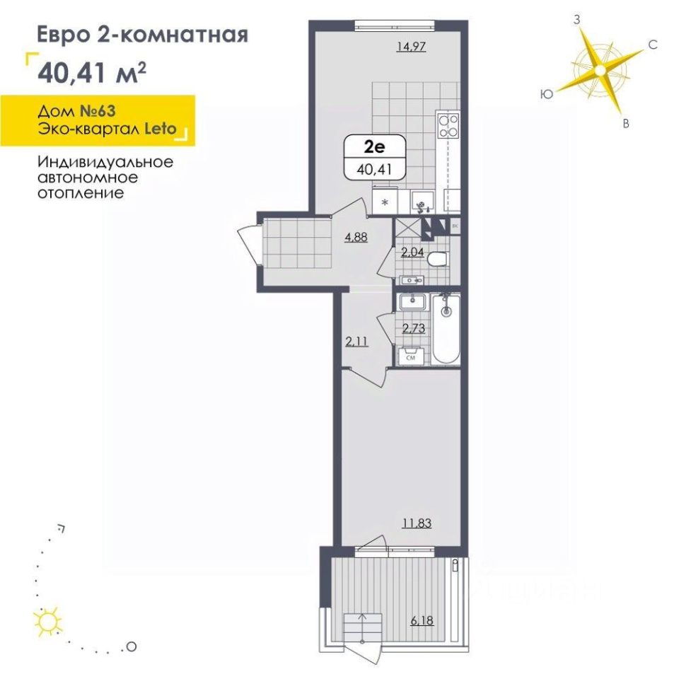 Продается 1-комн. квартира на 1 этаже в 63 доме в малоэтажном квартале LETO.