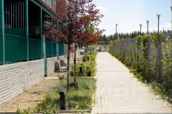 • Красивое современное благоустройство: детские площадки преимущественно из натуральных материалов, брусчатка в пешеходных зонах, масштабное озеленение во дворах, внутри квартала лиственные и плодовые деревья.