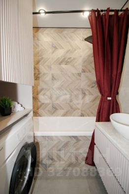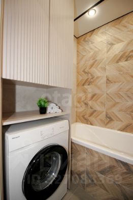Санузел раздельный, отделан керамогранитом, установлена стиральная машина.