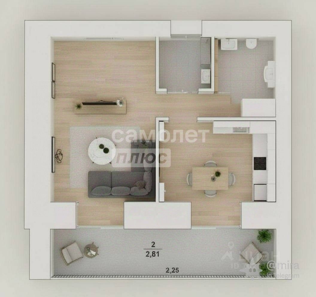 Просторная квадратная прихожая. В квартире есть лоджия 6 кв.м, кухня 6 кв.м