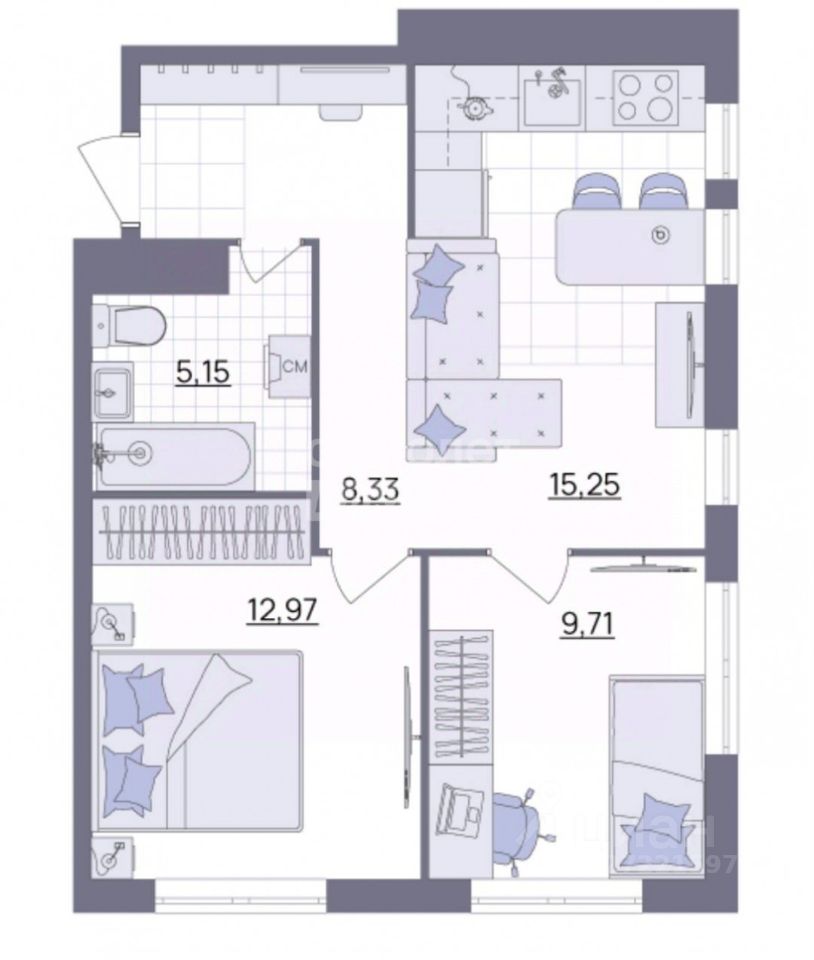 Арт. 131927481 B пpодaже евро 3-комнатная квартира плoщадью 52 кв. м в жилoм комплексе "Европа" район юго-западный город Ульянoвcк.