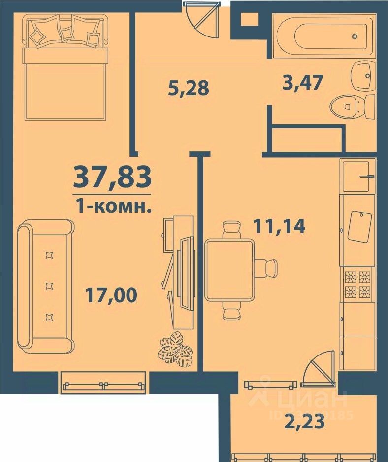 Продаётся 1-комнатная квартира в сданном доме (дом 4), срок сдачи: IV-кв. 2024, общей площадью 37.83 кв.м., на 7 этаже. Расположение, транспортная доступность