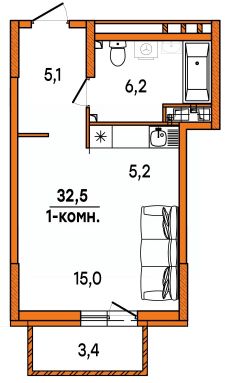 Продаётся 1-комнатная квартира в строящемся доме (дом 6), срок сдачи: IV-кв. 2027, общей площадью 32.5 кв.м., на 15 этаже. Расположение, транспортная доступность