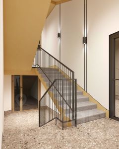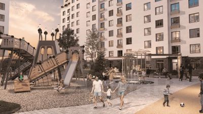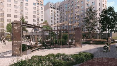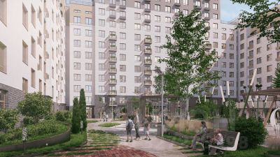 На внутренней территории жилого комплекса предусмотрен закрытый двор c зонами для работы и отдыха, спортивными и детскими площадкми. Продуманный ландшафтный дизайн с разнообразными растениями создаст дополнительный уют на территории двора. Благодаря сквозным подъездам легко попасть на улицу и двор.