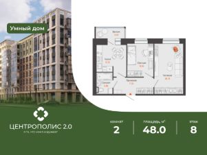 В Заволжском районе Ульяновска продается 2-комнатная квартира площадью 48.00 кв. м. Квартира расположена на 8 этаже 9 корпуса в жилом комплексе Центрополис 2.0.