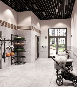 В подъездах предусмотрены колясочные и велосипедные, а также лапомойки для домашних животных.