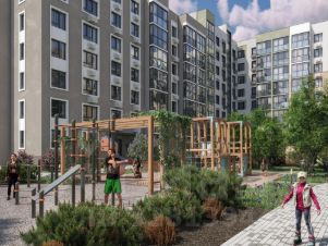 Дворы благоустроены с ландшафтным дизайном, зонами отдыха и спорта, детскими площадками и многоуровневым освещением. Пространства спроектированы для комфортного отдыха и безопасных прогулок жителей.
