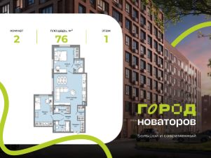 В продаже 2-комнатная квартира площадью 76.00 кв. м в жилом комплексе "Город новаторов" в Ульяновске.