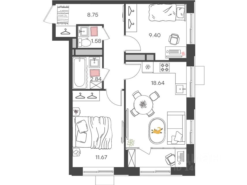 Жилая площадь39,7 м²