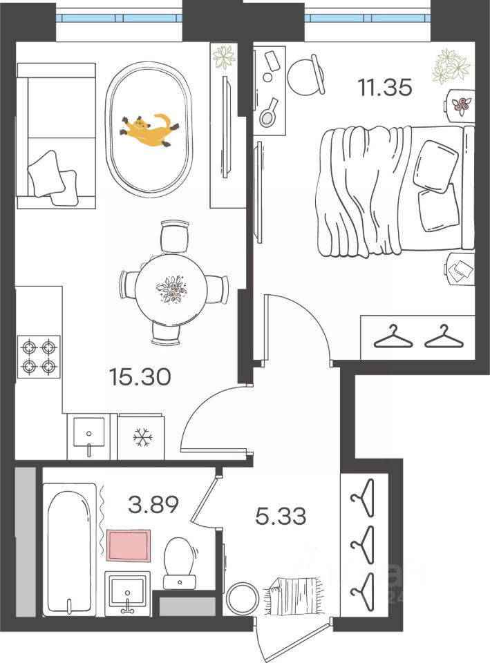 Общая площадь35,87 м²