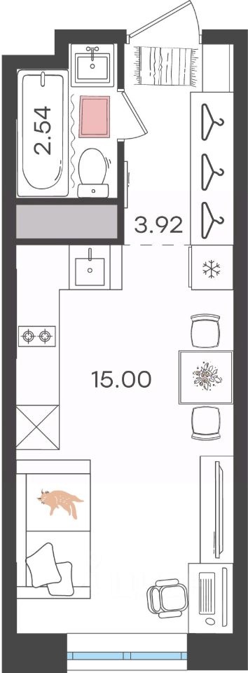 Общая площадь21,46 м²