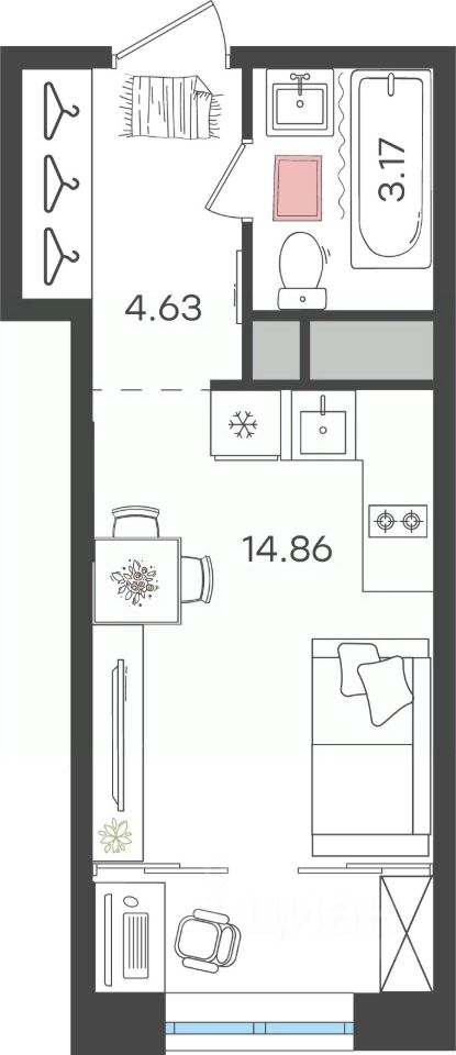Общая площадь22,66 м²
