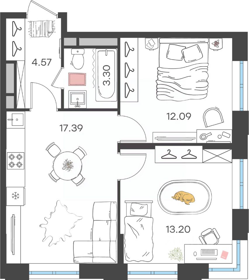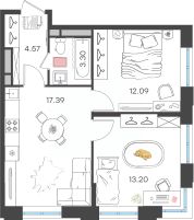 Общая площадь50,55 м²