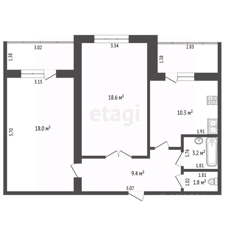 Особую привлекательность квартире придают два утепленных балкона, которые можно использовать как дополнительные зоны отдыха или хранения. На балконах натянут потолок и выведено освещение. Продуманная планировка включает в себя просторную кухню-гостиную, где вся семья сможет собираться за общим столом или проводить время вместе.