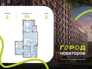 В продаже 2-комнатная квартира площадью 77.00 кв. м в жилом комплексе "Город новаторов" в Ульяновске.