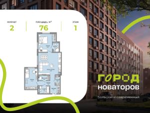 В продаже 2-комнатная квартира площадью 76.00 кв. м в жилом комплексе "Город новаторов" в Ульяновске.