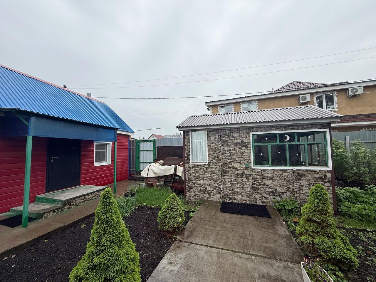 По участку сделаны бетонные дорожки, всё ухожено и благоустроено.