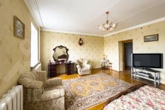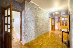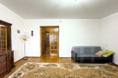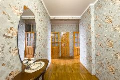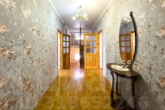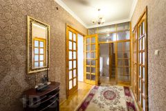 На первом этаже расположены просторный зал, кухня со встроенной техникой и системой хранения, санузел. Полы из паркета, окна с пластиковыми стеклопакетами.