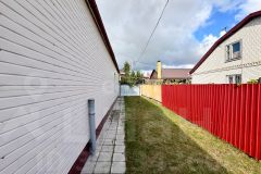 Благоустроенная территория дополнена гаражом на два автомобиля, погребом для хранения запасов, а также зоной для отдыха с мангалом и беседкой. Инженерные коммуникации обеспечивают бесперебойное проживание: дом подключен к центральным водоснабжению и канализации, а отопление осуществляется с помощью надежного газового котла.