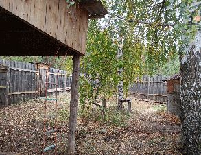В доме две комнаты, кухня, кладовка, большой коридор. Отопление печное: действующая печка голландка и русская печь, требующая ремонта. Во дворе имеется навес. Большой двор огорожен высоким деревянным забором. Можно подвести газ, труба находиться в 30 м.