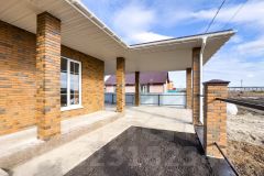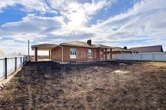 Одноэтажный дом общей площадью 150 кв.м, количество спальных комнат 3, просторная кухня гостиная 48,59 кв.м, терраса, навес для автомобиля.