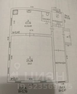 Жилая площадь — 35,5м², общая полезная площадь (с верандой, сенями и котельной) - 50м².