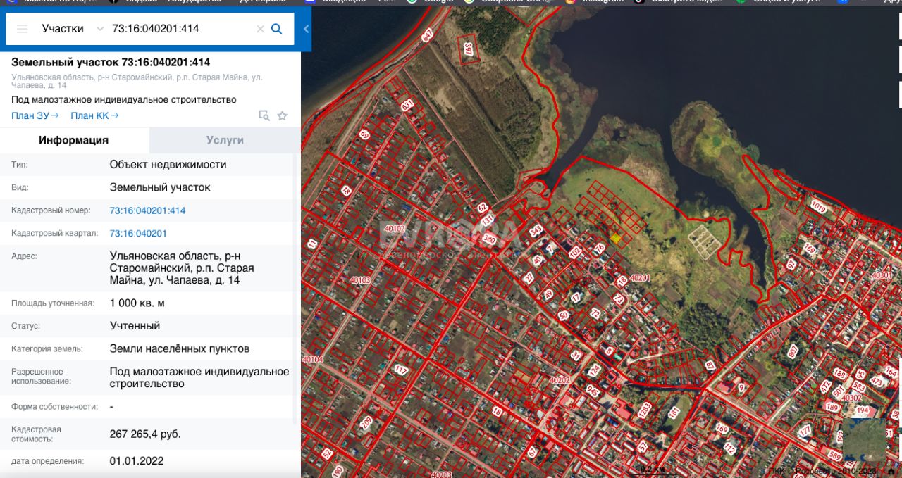 Участок 10 сот. (ИЖС) продаётся в Старой Майне. . Продается: Земельный участок с кадастровым номером 73:16:040201:414, расположенный по адресу: Ульяновская область, р-н Старомайнский, р.п. Старая Майна, ул. Чапаева, д.14, площадью 1000 м², разрешенное использование под малоэтажное индивидуальное строительство, категория земель - земли населенных пунктов. Ограничения и обременения на земельный участок отсутствуют.