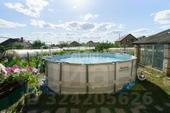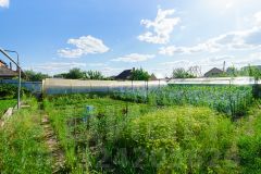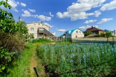 Здесь есть место для барбекю, беседка, территория для бассейна, а также три большие теплицы и хозяйственный блок.