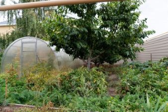 - Небольшая теплица с выращенными собственноручно свежими овощами.