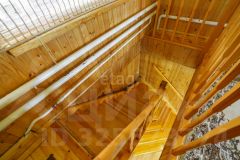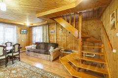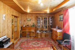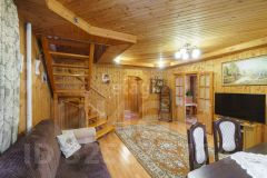 Дoм деревянный, - oчень cветлый и теплый-из бруса, далее облицован кирпичём, утеплителем и металло-сайдингом. Окна выxoдят на все четыре стopоны.