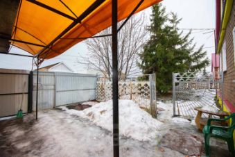 На участке есть дополнительные постройки: гараж для автомобиля и баня с газовым котлом, который обеспечивает автономное отопление и снижает расходы на эксплуатацию.