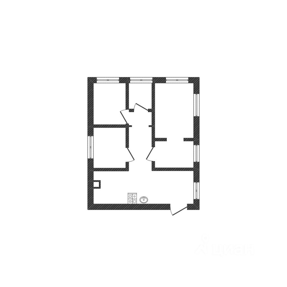 Площадь дома 101 квадратный метр, где размещено 3 комнаты и ещё одна большая комната в черновом ремонте.