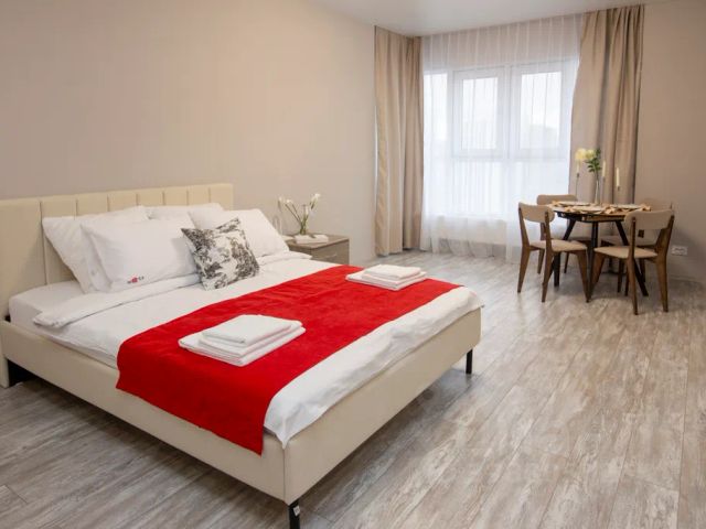 Квартира в новом современном ЖК. Двухспальная кровать, диван-кровать, телевизор, утюг,фен, интернет,кондиционер, микроволновка, холодильник, посуда, стиральная машинка.Отчётные документы командировачным Чистое постельное бельё и полотенца. На территории ЖК есть различные магазины "Магнит"," КБ", кофейни,суши и т.д. Территория охраняемая.Современные детские площадки. Заезд после 13:00 выезд до 12:00.Возможен рании заезд и выезд или позднии по договорённости. Аэропорт 20 мин. Ж/Д вокзал 15мин. Аквапарк 10мин. Татьяна арена 10мин. Курить в квартире запрещено (установлены датчики дыма!!!) , есть балкон. Для вечеринок и шумных компании не сдаём!!! Паспорт при заселении обязательно.