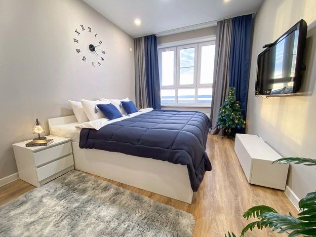 Заезжайте в уютную квартиру комфорт-класса с потрясающим видом в ЖК Аквамарин. 9 этаж в 24-этажном доме Из окна открывается удивительный вид на реку Если вы предпочитаете пить кофе и одновременно получать эстетическое удовольствие, глядя в окно, Вам точно к нам!) Мы с заботой подготовили для вас всё необходимое для комфортного проживания: Шикарная большая кровать, Smart-ТV, Wi-Fi, кофемашина, cтиральная машина, необходимая техника и мебель, посуда, фужеры, утюг, фен, гладильная доска, постельные принадлежности, полотенца. В непосредственной близости Торговый центр Аквамолл и гипермаркет Ашан. Заезды: после 14.00. Выезды: до 12.00. Страховой депозит 2000 руб. (Возвращается после выезда) Для командировочных предоставляем все необходимые документы. В шаговой доступности набережная реки Свияги, крупный торговый центр, бутики, кинотеатр, аптека, аттракционы, пляж. Расстояние до Аэропорта Центральный- 9 км (17 мин на такси) Расстояние до Центрального Автовокзала 800 м (можно дойти пешком) Расстояние до жд вокзала 8 км (14 мин на такси) Расстояние до остановки общественного транспорта 100 м. До центральной части города -10 мин. на общественном транспорте. Уютная квартира комфорт-класса с потрясающим видом в ЖК Аквамарин. 9 этаж в 24-этажном доме. С балкона открывается удивительный вид на реку. Если вы предпочитаете пить кофе и одновременно получать эстетическое удовольствие, глядя в окно, вам точно к нам). Мы с заботой подготовили для вас всё необходимое для комфортного проживания: - шикарная большая кровать - smart-тv - wi-fi - кондиционер - стиральная машина - необходимая техника и мебель - посуда - фужеры - утюг - фен - гладильная доска - постельные принадлежности - полотенца.